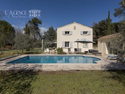 Sur un magnifique terrain plat, paysager et entièrement clôturé de + de 5 000m², cette grande maison familiale très bien entretenue de 216 m², au charme indéniable, offre des espaces de vie confortables et chaleureux. De plain-pied, elle se compose d'une entrée avec placard, d'un salon cosy agrémenté d'une cheminée, d'un vaste séjour avec poêle à bois, d'une cuisine américaine contemporaine, d'une buanderie/arrière-cuisine ainsi que d'une suite parentale avec salle de bains, WC et placards. Un WC invités complète ce niveau. À l'étage, trois grandes chambres avec placards, un WC séparé et une salle d'eau récente offrent un espace nuit fonctionnel et lumineux. Un studio indépendant vient compléter cette propriété. Il comprend une kitchenette, une pièce de vie faisant office de chambre avec rangement et une salle d'eau avec WC. Les multiples terrasses prolongent agréablement les lieux de vie. Un garage et un abri en bois apportent des solutions de stockage supplémentaires. L'extérieur, conçu pour la détente et les loisirs, dispose d'une belle piscine et d'un terrain de pétanque. Arbres fruitiers et d'ornement. Pour votre confort, la maison est équipée de fenêtres double vitrage et de volets en bois, ainsi que de la climatisation dans chaque chambre. Un véritable havre de paix, dans une campagne préservée, à 25 minutes environ du centre-ville d'Aix-en-Provence.