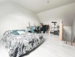 A l'étage, grand palier accueillant un espace bureau, 1 grande chambre avec dressing et une salle d'eau avec wc, ainsi qu'un grenier de 65 m2 avec sol en OSB, tableau électrique et eau en attente pour pouvoir accueillir de nouvelles chambres, avec un conduit inox de chaleur de l'insert bois présent pour répartition de chaleur.