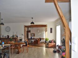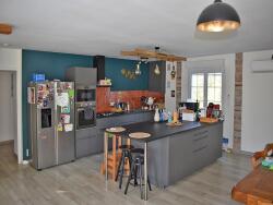 exposée sud, se compose sur 2 niveaux. Au rez de chaussée, vous trouverez une agréable et spacieuse pièce de vie avec cuisine ouverte récente, un salon, 2 chambres dont une avec dressing, un wc et une salle de bain. L'étage inférieur est composé d'une chambre, une buanderie et une salle de jeux/ bar qui vous permettra d'accueillir vos amis, avec un accès vers l'extérieur.