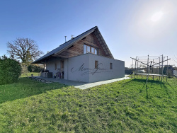 Messery, commune prisée du Bas-Chablais à 24 km de Genève et 21 km de Thonon-les-Bains, offre un cadre de vie calme et verdoyant aux portes du lac Léman. C'est dans ce secteur recherché que se situe cette belle maison d'architecte sur terrain de 911 m2 clôturé. Construction soignée de 2017, aucun travaux à prévoir, performances énergétiques exceptionnelles classées DPE A. L'architecture contemporaine mêle harmonieusement enduit gris, bardage bois naturel et toiture en tôle anthracite. L'accès se fait par un portail coulissant motorisé ouvrant sur une grande cour pavée offrant plusieurs places de stationnement. Terrasse sur plots donnant sur un jardin en pelouse. Au rez-de-chaussée : entrée béton ciré, beau séjour lumineux parquet stratifié ouvert sur la cuisine avec grande baie vitrée donnant sur la terrasse. Cuisine entièrement équipée avec îlot central et meubles laqués blancs. Cellier/buanderie avec évier, WC suspendu indépendant. Garage intégré deux vantaux avec accès direct à une cave enterrée offrant un beau volume de stockage. À l'étage : une chambre parentale avec douche à l'italienne privative, trois chambres parquet stratifié avec dressings intégrés, salle de bains (baignoire, vasque), WC suspendu séparé.
