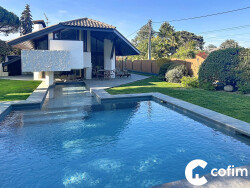 L'extérieur fait partie du décor grâce aux grandes baies vitrées, avec une très belle piscine dans le prolongement de la maison, un jardin arboré et une terrasse mi ombre mi soleil. Tout est parfait pour profiter de extérieur en toutes saisons.