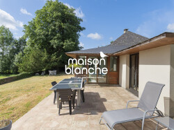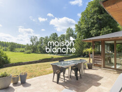 Aux portes dAngers sur la commune de Briollay: environnement privilégié pour cette maison d'architecte de plain-pied comprenant 5 chambres offrant un cadre de vie calme et verdoyant. Elle se compose d'une entrée, de deux premières chambres, d'un vaste salon/séjour lumineux agrémenté d'un poêle à pellets, d'une cuisine aménagée et équipée, ainsi que d'une suite parentale avec salle de bains. Un couloir avec rangements mène à deux autres chambres et une salle d'eau. Une arrière-cuisine complète l'ensemble. À l'extérieur, vous profiterez d'un jardin arboré d'environ 1 800m2, d'une grande prairie attenante d'environ 10 000m2 ainsi que d'une piscine chauffée et sécurisée. Un lieu idéal pour les amoureux de la nature ou les propriétaires d'animaux (possibilité d'accueil de chevaux). La maison bénéficie d'un accès facile à Angers, que ce soit en voiture, en bus ou par la gare. Commerces de proximité et services à quelques minutes. Maison Blanche vous accueille téléphoniquement du lundi au samedi de 8h à 19h, sans interruption. Clément BROSSET EI RSAC n° 979 059 482