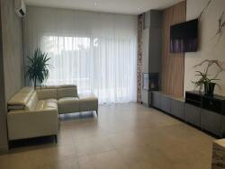 De grandes baies vitrées vous mènent à la terrasse et au jardin arboré. Se trouvent aussi, une salle de bains avec wc et une grande chambre d'environ 30 m2 avec de très grands rangements intégrés et vue sur le jardin...