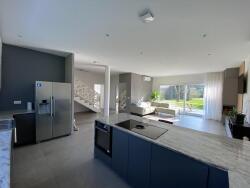Au rez-de-chaussée, une entrée avec porte donnant sur le garage, une grande pièce à vivre très lumineuse avec cheminée et une cuisine ouverte aménagée et entièrement équipée en électro-ménager de qualité...