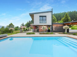 A Gérardmer "les Xettes", vue sur le lac - Vend une maison d'architecte 5 pièces avec terrain 2000m2 et garage. UNIQUE - Située sur le coteau des Xettes, plein sud, le plus prisé de Gérardmer, cette maison d'architecte construite en 1999 sur une parcelle de terrain de 2000m2 s'inspire du concept Le Corbusier de la "maison à vivre". L'architecture est toute aussi technique qu'esthétique. L'harmonie entre la maison et son environnement est essentielle. L'innovation et l'audace de cette maison résident aussi dans l'emploi des matériaux industriels comme l'acier, le verre et le béton armé. D'une surface habitable de 188m2, la maison délivre en rez-de-jardin un spacieux salon/séjour de 54m2 équipé d'un poêle à bois, une cuisine fonctionnelle toute équipée jouissant d'une vue panoramique sur la vallée et le lac, une chambre parentale climatisée avec sa salle bain en marbre rose du Portugal, wc invités avec vestiaire et une belle terrasse en granit brut de Norvège ombragée pour vos repas en famille et entre amis. La décoration intérieure est soignée. La qualité haut de gamme des matériaux et des équipements confère à cet intérieur une ambiance intemporelle et contemporaine : calepinage des murs en bois, sol en granit de Norvège, fenêtres en vitrerie VEK pour le design et l'efficacité énergétique. La lumière naturelle envahit chaque espace. Le 1er étage vous offre une chambre ou un bureau. En rez-de-chaussée, vous disposez de deux chambres, une salle de bain, un wc, cellier, une cave à vin et d'autres espaces techniques. Pour vous stationner, vous bénéficiez d'un garage, un carport et plusieurs emplacements devant la maison. Toiture en acier inoxydable, volets motorisés, chauffage au gaz - DPE D Une adresse singulière à vivre, clé en main, à 800m d'altitude. Une exclusivité Place Privée. Les informations sur les risques auxquels ce bien est exposé sont disponibles sur le site Géorisques : www.georisques.gouv.fr.