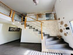 Cette maison se compose au rez-de-chaussée d'une belle entrée, d'un grand salon/séjour avec mezzanine, d'une grande cuisine ouverte avec buanderie, d'un wc, d'une chambre et une salle de bain.