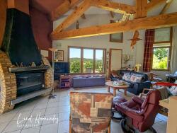 - Grande pièce de vie de 60m², baignée de lumière, séjour cathédrale avec poutres apparentes, cheminée insert et climatisation réversible