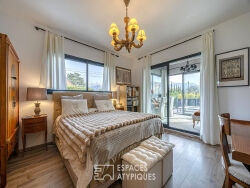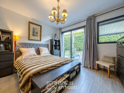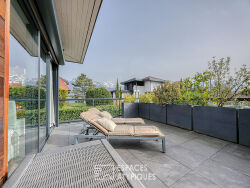 Située à Sévrier, dans un secteur résidentiel calme et prisé, cette maison d'architecte de 232 m² Carrez (245 m² au sol) s'érige sur un terrain paysager clos de 1000 m². A quelques pas des rives du lac d'Annecy et de la piste cyclable, cette propriété singulière sur trois niveaux incarne un art de vivre résolument contemporain où la lumière naturelle est le fil conducteur. Dès l'entrée au rez-de-chaussée, l'architecture privilégie des volumes généreux et une fluidité de circulation. La pièce de réception de 68 m², comprenant un élégant salon et une cuisine ouverte entièrement aménagée et équipée, s'ouvre largement sur une terrasse principale et sa pergola bioclimatique. Ce niveau accueille également une première chambre avec une salle d'eau privative. A l'étage, l'espace nuit se décline en trois chambres, chacune disposant de sa salle de bain. Deux d'entre elles bénéficient d'une véranda lumineuse transformée en bureau, avec un accès direct à une terrasse de 40 m² surplombant le jardin. Le rez-de-jardin dévoile un atout majeur : un appartement indépendant de 57 m² environ comprenant un séjour, une cuisine, une chambre et une salle d'eau, idéal pour un projet locatif ou l'accueil d'invités. Le sous-sol comprend également une buanderie, un local technique et une grande cave. A l'extérieur, le jardin abrite un jacuzzi pour des moments de détente absolue. Un terrain plat et clôturé, cinq places de stationnement et deux garages fermés complètent ce bien aux prestations haut de gamme. La proximité des rives du lac d'Annecy confère à cette adresse une rareté très recherchée. A seulement 15 minutes d'Annecy en vélo. Emplacement exceptionnel, côté lac, avec un accès piéton au rivage. CLASSE ÉNERGIE : B / CLASSE CLIMAT : A Montant moyen estimé des dépenses annuelles d'énergie pour un usage standard, établi à partir des prix de l'énergie des années 2021, 2022 et 2023 : entre 1.720 Euros et 2.370 Euros. Les informations sur les risques auxquels ce bien est exposé sont disponibles sur le site Géorisques pour les zones concernées : www.georisques.gouv.fr Contact : Laurence 06 61 02 84 42 Laurence ROMERO (EI) Agent Commercial - Numéro RSAC : 841 857 295 - Annecy.