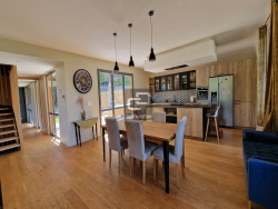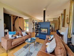 CD IMMOBILIER vous présente en exclusivité cette maison d'architecte achevée en 2022 à Poleymieux au mont d'or. Lumière, volumes et matériaux ont été définis pour un confort exceptionnel sur 211 m2. Les façades en pierres dorées offrent le charme de l'ancien dans un environnement privilégié, et tout le confort moderne est présent dans l'agencement intérieur. Lumineuse en toute saison grâce à sa quadruple exposition, elle offre un espace de vie de 105 m2 sur terrasse et jardin avec piscine. Un salon de réception confortable offre une vue panoramique sur la vallée, et permet de profiter de la chaleur douce de sa cheminée. La cuisine aménagée sur mesure bénéficie de larges plans de travail ainsi que de tous les équipements. Le parquet en chêne, la cheminée traversante, le mur entièrement vitré sur vue, les nombreuses ouvertures et baies sont autant d'exemples des prestations de qualité réalisées. Chaque matériau à été choisi avec soin. L'étage comporte un vaste dégagement, lequel dessert deux chambres master avec dressings et salles d'eau contemporaines de 21 et 24 m2, deux chambres de 12 et 13 m2 avec placards aménagés sur mesure, une salle de bains, et une buanderie. Les salles d'eau comprennent de véritables douches italiennes réalisées dans les règles de l'art avec des grès cérame aux sobres motifs gravés. La parcelle de 895 m2 se compose d'un jardin aménagé d'une terrasse, et en surplomb d'un mur en pierres dorées, une deuxième terrasse avec piscine chauffée et sécurisée par volet immergé. L'ensemble est au calme à l'abri des regards dans un ensemble mixte de nature et d'habitat individuel préservé. L'accès à la propriété se fait par un chemin pavé dans la continuité de l'entrée de la maison desservant un garage double de 52 m2 et un atelier de 27 m2. Le chauffage est assuré par pompe à chaleur au sol sur tout l'espace de vie et, par radiateurs dans les chambres. Le DPE est excellent avec un double 'A'. Le montant estimé des dépenses annuelles d'énergie de ce logement pour un usage standard est compris entre 650 EUR et 920 EUR sur les années de références 2021, 2022 et 2023. Les points forts de ce bien sont : La vue exceptionnelle, les prestations contemporaines de qualité, le volume de la pièce de vie, la luminosité et le calme. Contactez Christèle Volcoff Lehoux au 06.08.54.43.01 pour une visite Les informations sur les risques auxquels ce bien est exposé sont disponibles sur le site Géorisques : www.georisques.gouv.fr