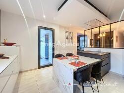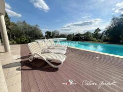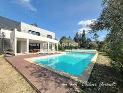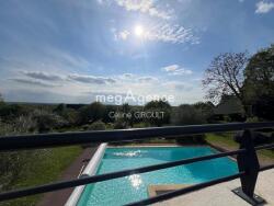 À l'extérieur, cette maison d'architecte s'étend sur un terrain de 4299 m² clos avec portail électrique et arboré qui s'articule en deux parties avec d'une part une piscine chauffée et son volet électrique, sa douche extérieure et une très grande terrasse dont une partie abritée et d'autre part une partie verger, le tout sans sis-à-vis. Plusieurs places de parking extérieures et un garage double avec portes électriques complètent les aménagements extérieurs, assurant confort et sécurité aux résidents et leur animal de compagnie.