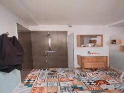 Cette villa comprend un séjour et une cuisine équipée donnant sur une belle terrasse en bois, une suite parentale avec douche italienne donnant sur un agréable patio, une chambre, un coin buanderie et un wc.