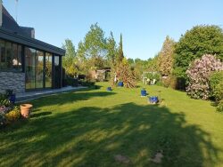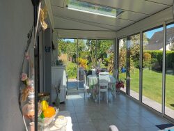 Confort et équipements : - Chauffage au sol électrique basse température avec thermostats individuels, pompe à chaleur réversible pour l'extension, poêle à bois - Menuiseries aluminium avec volets roulants électriques et moustiquaires dernière génération sur l'ensemble de la maison - Cuisine semi-ouverte, entièrement équipée avec électroménager récent - Connexion fibre optique, idéale pour le télétravail