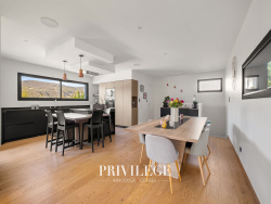 Au rez-de-chaussée, vous découvrirez une entrée accueillante avec placards sur mesure, desservant une belle cuisine ouverte sur le salon et la salle à manger. l'espace de vie de plus de 70 m2 bénéficie d'une double exposition et s'ouvrent sur une terrasse avec pergola. À ce même niveau, une chambre/bureau avec salle de douche et une arrière-cuisine. À l'étage, l'espace nuit se compose d'une suite parentale avec terrasse offrant une très jolie vue, de deux chambres avec dressing, d'une quatrième chambre et d'une salle de bains. Le sous-sol, entièrement aménagé, propose de beaux espaces de loisirs et de confort : home cinéma, cave à vin, salle de douche et buanderie. À l'extérieur, le jardin paysagé accueille une piscine et un pool house, ainsi qu'une terrasse ombragée bénéficiant de la vue, parfaits pour profiter pleinement des beaux jours en famille ou entre amis.