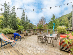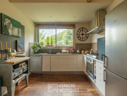 Située dans la commune de Tabanac, cette maison d'architecte en bois sur deux niveaux surplombe la nature environnante. Au rez-de-chaussée, une vaste entrée comprend un escalier menant à l'étage, un cellier ainsi qu'un WC. Un espace situé à gauche de l'entrée, actuellement utilisé comme atelier, peut être facilement transformé en chambre ou en studio. A l'étage, on arrive directement dans la pièce de vie, organisée en plusieurs espaces. La double hauteur sous plafond et les nombreuses ouvertures vers l'extérieur apportent une belle luminosité à cet espace chaleureux et convivial. Une terrasse en bois orientée plein sud offre une vue dégagée sur les arbres environnants, permettant de profiter de la chaleur du soleil, tandis qu'une terrasse au nord, à l'arrière, permet de déjeuner à l'ombre. Un espace ouvert en mezzanine, servant de bureau, surplombe le séjour et révèle une magnifique charpente en bois traditionnelle réalisée par des compagnons. Ce niveau est complété par une suite parentale avec salle d'eau, deux chambres, une autre salle d'eau et un WC séparé. Le vaste jardin en pente abrite de beaux arbres fruitiers, des vignes, une petite forêt ainsi que plusieurs espaces nichés dans la roche, autrefois utilisés comme maison troglodyte et carrière, pouvant servir d'atelier ou de zone de stockage. Une rampe d'accès permet d'accéder directement depuis l'extérieur au premier étage par la terrasse nord. Un véritable coup de coeur pour cette maison dans les arbres, bien pensée, fonctionnelle, chaleureuse et atypique ! CLASSE ÉNERGIE : C / CLASSE CLIMAT : C Montant moyen estimé des dépenses annuelles d'énergie pour un usage standard, établi à partir des prix moyens de l'énergie indexés sur les années 2021, 2022 et 2023 entre 1 170 et 1 630 euros. Charline Driffort (EI) Agent Commercial : 06 79 02 11 09? / Numéro RSAC : 837 551 266 Bordeaux.???????????????????? Charline Driffort (EI) Agent Commercial - Numéro RSAC : - .