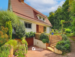 L'agence CV IMMOBILIER vous présente en EXCLUSIVITÉ cette maison d'architecte difiée en 1975 à Saint-Pierre-les-Elbeuf. Elle séduit par son emplacement privilégié, son terrain clos et paysager de plus de 2 600 m2 ainsi que par ses beaux volumes baignés de lumière. Au rez-de-chaussée : un hall d'entrée dessert un salon lumineux avec cheminée à foyer ouvert, une salle à manger conviviale, une cuisine indépendante aménagée, une chambre pouvant également faire office de bureau et un wc indépendant. À l'étage : un couloir dessert 4 chambres dont une suite parentale avec salle de douche et double dressing. Une salle de douche indépendante et un wc complètent ce niveau. Au sous-sol : une entrée, une cave à vin gravillonnée, une salle de jeux, une chaufferie et une buanderie avec point d'eau, un garage. Prestations : l'assainissement est relié au tout-à-l'égout. Le chauffage est assuré par une chaudière à pellets récente et la production d'eau chaude par un ballon thermodynamique. L'ensemble des fenêtres est en aluminium et la maison est équipée de volets roulants sur toutes les ouvertures, électriques au rez-de-chaussée. À l'extérieur : une terrasse donnant sur un jardin paysagé sans vis-à-vis, avec accès direct à la Forêt de Bord. Annexes : une cuisine d'été avec point d'eau et cuisson, un cabanon de jardin. Vous aimerez : le charme des années 70 couplé au confort moderne, dans un cadre verdoyant et paisible, idéal pour accueillir une famille. Les informations sur les risques auxquels ce bien est exposé sont disponibles sur le site Géorisques : www.georisques.gouv.fr