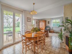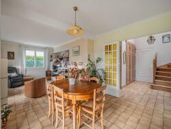 Dès l'entrée, un vaste hall équipé de rangements dessert une spacieuse pièce de vie, baignée de lumière grâce à ses larges ouvertures et à sa double exposition. Cet espace chaleureux comprend un salon avec cheminée ainsi qu'une salle à manger, s'ouvrant sur une agréable terrasse exposée plein sud. La cuisine séparée, aménagée et entièrement équipée, bénéficie elle aussi d'un accès direct à l'extérieur.