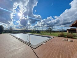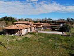 Au coeur de la campagne condomoise, sans aucun isolement, cette superbe maison d'architecte bénéficie de vues imprenables sur les coteaux environnants. Implantée sur un terrain d'environ 9 400 m² joliment paysagé, la propriété offre un cadre de vie privilégié avec une piscine de 20 mètres de long, un double garage ainsi qu'un vaste atelier. Développant 305 m² habitables, la maison s'ouvre sur une élégante entrée traversante au plafond cathédrale. Le séjour, baigné de lumière grâce à de larges baies vitrées, accueille un salon, une salle à manger et une magnifique cuisine entièrement équipée, sublimée par des comptoirs en pierre grise anthracite. La suite parentale se compose d'une spacieuse chambre avec espace bureau, d'une salle de bains avec jacuzzi et d'un dressing aménagé. Deux autres chambres disposent chacune de leur propre salle d'eau. Dans la tour, une quatrième chambre avec lavabo et toilettes offre la possibilité d'aménager facilement une douche. Les espaces fonctionnels comprennent une grande buanderie, une pièce de rangement et une cave. Particulièrement lumineuse, la maison bénéficie de prestations de confort modernes : chauffage et eau chaude par pompe à chaleur, climatisation réversible dans certaines pièces, larges ouvertures sur l'extérieur. Cette propriété contemporaine, confortable et élégante est vendue entièrement meublée et équipée.