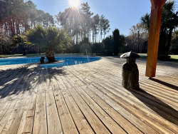 À l'abri des regards, au coeur d'un parc paysagé de 4 836 m2 ouvert sur un bois classé non constructible, cette propriété confidentielle de 202 m2 offre une atmosphère rare, faite de lumière, de calme et d'espace. Construite par un Compagnon du Devoir, la maison révèle une architecture authentique où chaque matériau a été choisi pour durer : mélèze de Sibérie en façade, bois massif doussié à l'intérieur, marbre brut dans les pièces d'eau. La pièce de vie, vaste et baignée de lumière, s'ouvre largement plein sud sur les terrasses, la piscine et la nature environnante. Les volumes respirent, les perspectives se prolongent vers le parc, créant une sensation immédiate de douceur et de liberté. La maison propose une suite parentale, une seconde chambre et une mezzanine lumineuse pouvant devenir bureau, salon privé ou espace de lecture. Pensée pour un confort remarquable en toute saison, elle bénéficie d'une géothermie horizontale avec pompe à chaleur, alliée aux qualités isolantes naturelles du bois massif. Bien idéal pour tout projet d'installation en profesion libérale, d'une famille recherchant un cadre de vie au calme, de la recherche d'un refuge contemporain au coeur de la nature. Pour tout renseignement ou pour visiter ce bien, merci de contacter votre conseiller immobilier Benjamin POTTIER au 0643904823 ou sur bpottier@laboutiquedupatrimoine.fr Ensemble, en confiance