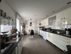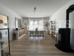 Dès l'entrée, vous découvrirez un vaste espace baigné de lumière, aux volumes généreux. Celui-ci conjugue harmonieusement un coin repas, un séjour chaleureux, ainsi qu'un hall d'escalier central agrémenté d'un poêle à granules apportant confort et chaleur à l'ensemble.
