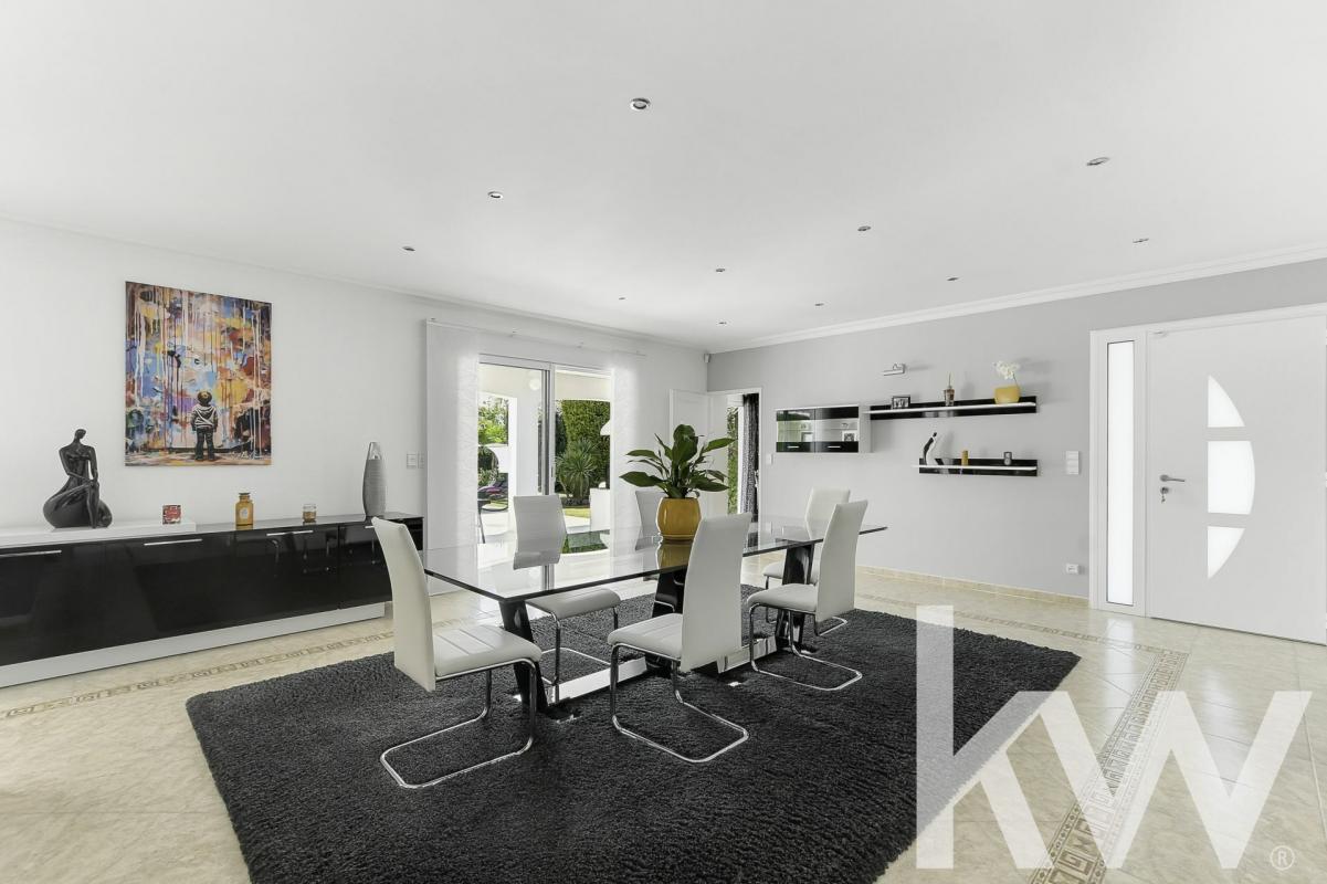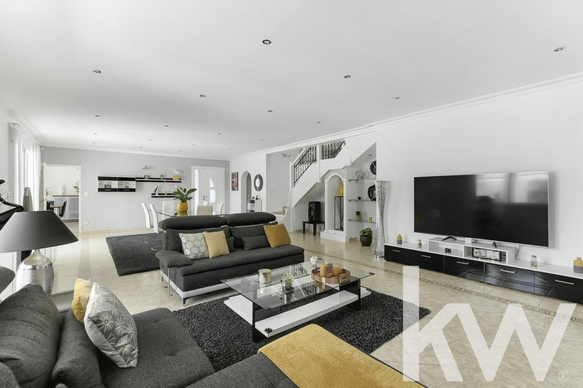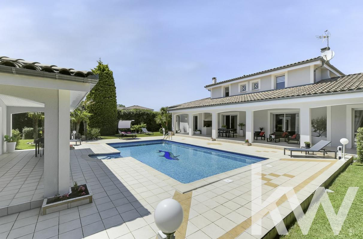 À Castelginest, découvrez une maison d'exception aux volumes généreux et aux jolies prestations. Située dans un environnement calme et résidentiel, cette propriété d'environ 285 m² habitable séduit par la qualité de sa construction, ses finitions soignées et son entretien exemplaire. Sans aucun vis-à-vis, elle vous garantit intimité et tranquillité, tout en restant proche de toutes les commodités. Édifiée sur un magnifique terrain arboré d'environ 1500 m², parfaitement entretenu grâce à un système d'arrosage intégré, elle offre un cadre de vie privilégié avec piscine, pool house et une grande terrasse couverte de 70 m², idéale pour profiter des extérieurs en toute saison. Dès l'entrée, vous serez séduit par une vaste pièce de vie de près de 70 m², lumineuse et accueillante. La cuisine, indépendante et dinatoire, allie fonctionnalité et élégance, avec un accès direct à un cellier et à une buanderie. Le rez-de-chaussée propose également une superbe suite parentale de plus de 40 m² avec un grand dressing, une salle d'eau raffinée comprenant double vasque, baignoire et douche. Un WC indépendant ainsi qu'un accès direct à un vaste garage double de 90 m² complètent ce niveau. Pour un confort optimal tout au long de l'année, la maison bénéficie d'un système de chauffage et de rafraîchissement par le sol, assurant une température agréable et homogène dans chaque pièce. À l'étage, un espace détente d'environ 40m2, aménagé autour d'un billard, une chambre intime et un WC offrent un espace chaleureux et convivial. Au dernier niveau, deux superbes chambres aux plafonds cathédrale disposent chacune d'un accès au dressing et d'un accès à une salle d'eau commune, pensée avec goût et praticité. Tout ici respire le soin et la qualité : matériaux nobles, volumes généreux, circulation fluide, ambiance soignée? Cette maison est un véritable bijou, à la fois élégant, confortable et fonctionnel. Un bien rare, sans compromis, qui mérite toute votre attention. Visite sur rendez-vous pour découvrir ce lieu unique et impeccable. Il y a cinq établissements scolaires dans la commune. Niveau transports en commun, on trouve huit gares à moins de 10 minutes en voiture. Des autoroutes et l'aéroport Toulouse-Blagnac sont accessibles à moins de 10 km. Pour vos loisirs, vous pourrez compter sur un tennis à proximité. Il y a également trois restaurants et trois commerces. Les informations sur les risques auxquels ce bien est exposé sont disponibles sur le site Géorisques : www.georisques.gouv.fr. Contactez notre agence immobilière KW ADVANCE pour obtenir plus de renseignements sur cette maison en vente à CASTELGINEST.