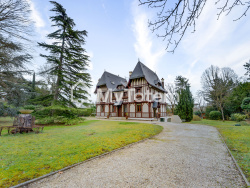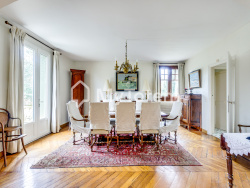 Découvrez cette exceptionnelle demeure de 380 m2, située dans le cadre prestigieux et arboré du parc de Maisons-Laffitte. Nichée sur un terrain paysagé de 2 400 m2, cette propriété allie avec élégance l'authenticité d'un style Anglo-Normand. Située à proximité de l'hippodrome de Maisons-Laffitte et de la renommée École Internationale L'Ermitage, cette demeure bénéficie d'une adresse prestigieuse et d'un accès facile aux commodités et aux transports. Les travaux récents, incluant la toiture, le ravalement, les colombages, la chaudière et les clôtures, garantissent un lieu de vie à la fois authentique et moderne. Baignée de lumière grâce à son orientation traversante, cette maison séduit par ses matériaux nobles et ses détails d'époque : tomettes, parquets anciens et boiseries raffinées. Au rez-de-chaussée, une entrée accueillante mène à une cuisine indépendante équipée d'un cellier pratique, un spacieux salon-séjour avec cheminée ouvrant sur une vaste terrasse bien exposée, un bureau idéal pour le télétravail et une salle TV/bibliothèque pour les moments de détente. Le premier étage comprend quatre chambres, dont une suite parentale avec dressing et salle de bains privative, une buanderie pratique et une salle de bains supplémentaire sur le palier. Le deuxième étage offre deux chambres supplémentaires, une salle de bains et une grande pièce de rangement modulable, pouvant être transformée en deux chambres supplémentaires selon vos besoins. Le sous-sol propose un garage spacieux pour plusieurs véhicules, une salle polyvalente aérée, idéale pour une salle de sport, une salle cinéma ou de jeux, ainsi qu'une cave pour le stockage. La propriété s'épanouit au coeur d'un jardin paysagé de 2 400 m2, impeccablement entretenu, offrant un havre de paix pour des moments de détente en pleine nature. Cette propriété unique constitue un lieu de vie exceptionnel dans l'un des quartiers résidentiels les plus recherchés de la région.