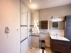 Découvrez cette magnifique maison semi-plain-pied construite en 2017, offrant une surface de 191 m² sur un terrain de 1 346 m². - Au rez-de-chaussée, vous serez accueilli par un hall d'entrée spacieux de 18 m² qui mène à un WC séparé avec lave-mains, ainsi qu'à une salle d'eau de 7,70 m² équipée d'une douche à l'italienne. Vous trouverez également un vaste espace de vie avec un séjour et une salle à manger de 38 m², ainsi qu'une cuisine aménagée et équipée de 18 m², complétée par un cellier de 7 m². - À l'étage, un palier dessert un second WC, une salle de bains avec douche et baignoire, ainsi que 4 chambres. - À l'extérieur, profitez d'un grand jardin avec un verger, d'une terrasse en pierres bleues, d'un parking pouvant accueillir 4 à 6 voitures avec un portail motorisé, ainsi qu'un grand garage avec porte motorisée capable d'accueillir 2 véhicules. Les équipements incluent des menuiseries en aluminium, des volets roulants électriques, un chauffage au sol, un ballon thermodynamique, et un aspirateur centralisé. Pour plus d'informations ou pour planifier une visite, n'hésitez pas à nous contacter !