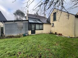 Maison d'habitation, construite en parpaings et recouverte d'ardoises, datant des années 1960, d'environ 100 m2. Comprenant : Une cuisine, un couloir, un WC, une salle d'eau, une chambre, une véranda et un grenier. Côté 2 ème partie (annexe) une entrée, un séjour, une chambre avec lavabo, et un grenier. A l'étage 2 chambres en enfilade d'environ 20m2. Garage attenant d'environ 27 m2.