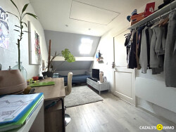 Au sein d'une petite copropriété (ASL : association de syndic libre) maison d'habitation d'environ 54,50 m² habitables, comprenant : Rez de chaussée : Entrée, cuisine aménagée ouverte sur pièce à vivre, salle de douche-wc, espace buanderie. Etage : 1 chambre traversante desservant 1 chambre. Sous-sol partiel aménagé : 1 pièce aménagée (chambre ou bureau) avec dressing privatif. Chauffage : Electrique. Assainissement : Tout à l'égout. Grande terrasse privative. 2 places de stationnements privatifs.