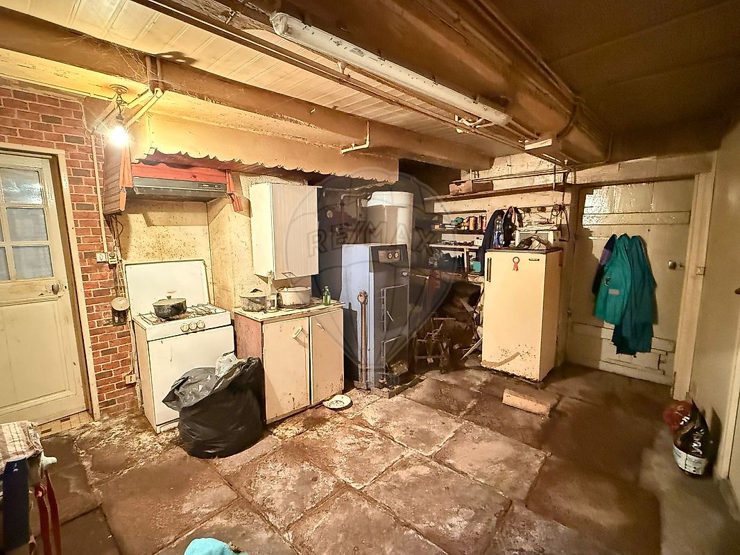 Une cuisine aménagée, un salon séjour, une salle de douche, WC, buanderie, accès au grenier aménageable ainsi qu'au petit terrain sur l'arrière de la maison afin d'y aménager un coin paisible pour les beaux jours.
