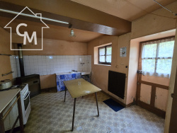 Maison d'habitation mitoyenne de plain-pied composée de 3 pièces, cuisine, toilettes, grenier au dessus. Garage à la suite. Terrasse et jardin à l'arrière. Chauffage chaudière fioul. Huisseries bois simple vitrage. Superficie totale du jardin : 1238 m2