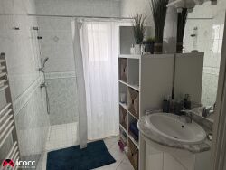 Située à quelques pas du centre-ville et de toutes les commodités, cette charmante maison de plain-pied vous séduira par son emplacement idéal et son fort potentiel. Elle se compose d'un salon/séjour lumineux, d'une cuisine américaine, de deux chambres confortables, d'une salle d'eau, d'un WC séparé, d'un garage aménagé en arrière-cuisine et d'un garage indépendant.Le tout édifié sur un terrain clos et arboré de 554 m² offrant un bel espace extérieur pour profiter des beaux jours.