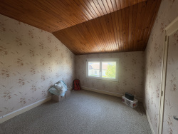 À l'étage : palier desservant deux chambres, un dressing pratique et deux coins mansardés à aménager selon vos besoins (bureau, salle de jeux ou chambre supplémentaire).