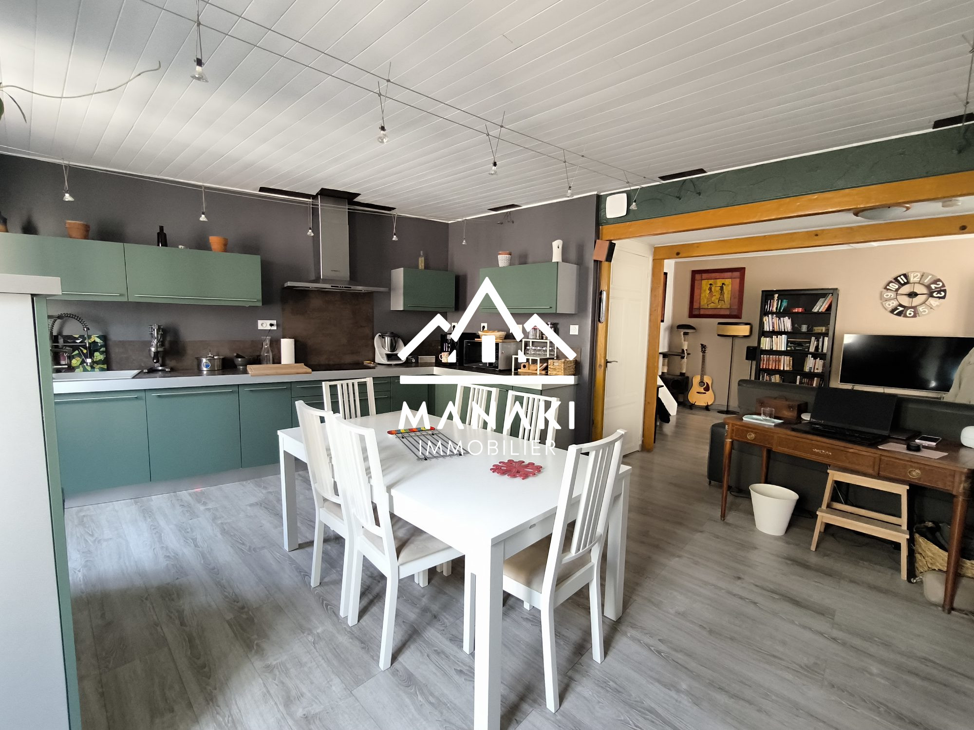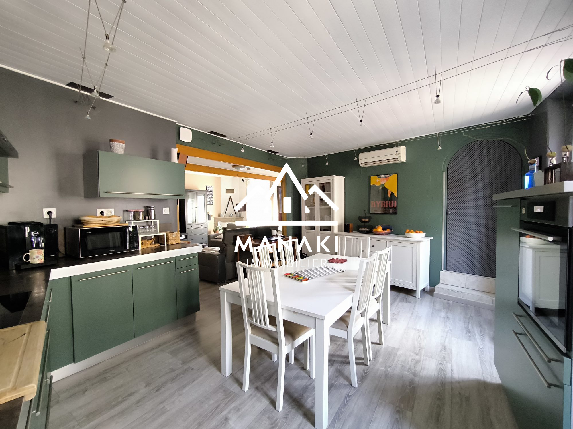 Jolie MAISON des Années 90 de Plain-Pied, de 107 m² habitables, mitoyenne d'un côté sur une parcelle de 377 m² Composée d'un SALON/SEJOUR, une CUISINE Ouverte, 2 CHAMBRES, un Bureau, une Buanderie, une Salle de Bains, un WC A l'extérieur 3 Terrasses dont une couverte Un Jardin de 300 m² arboré et clôturé A rafraîchir à votre goût !! Quartier calme : 15 km de la mer, 25 km de la montagne BELLE AFFAIRE / A VOIR RAPIDEMENT !!!