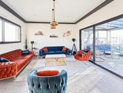 La pièce de vie, véritable espace signature, propose 90 m² traversants baignés de soleil grâce à de larges baies vitrées. Dans sa continuité, une véranda chauffée, fermée par un toit vitré, peut s'ouvrir intégralement pour créer une scénographie dedans-dehors spectaculaire.