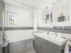 À l'étage, la maison se distingue par une configuration particulièrement confortable : Trois chambres, Deux chambres avec leur salle d'eau, Une troisième chambre avec sa propre salle de bain (baignoire), Un WC indépendant.