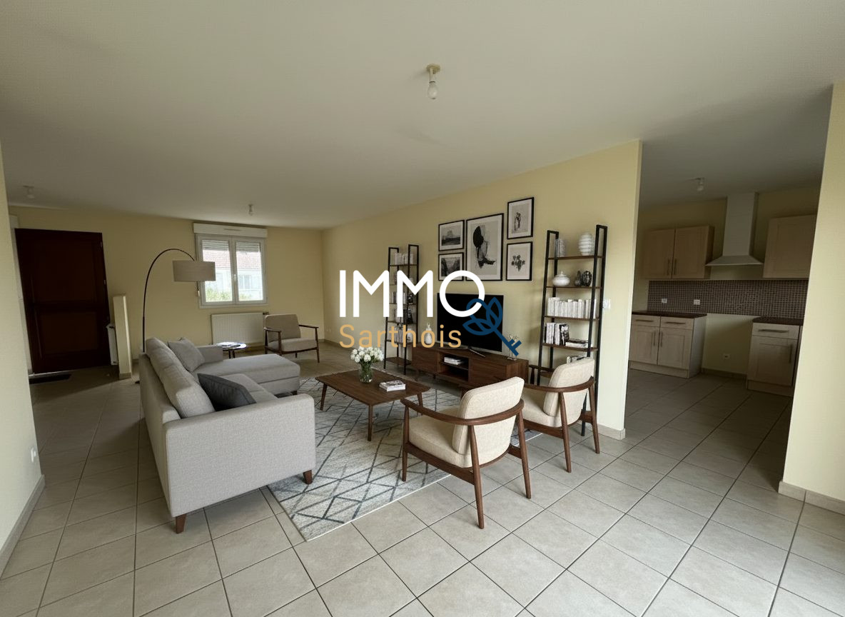 L'agence Immo Sarthois vous propose à la vente cette maison de 114 m², située à Ecommoy (secteur calme), alliant le charme de l'ancien et le confort d'une extension récente (RT 2012). L'INTÉRIEUR : Pièces de vie : Grand salon lumineux, cuisine aménagée et équipée ouverte sur la salle à manger.