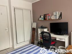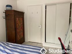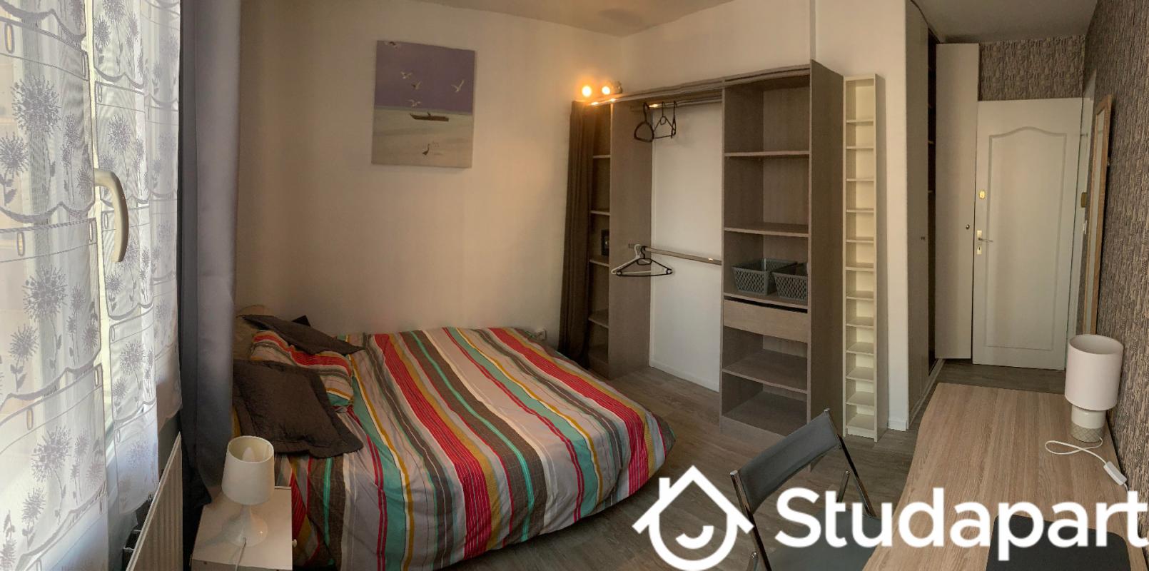 Chambre de 11m² avec lit, bureau, armoires. Une grande fenêtre permet d'avoir de la luminosité dans la pièce avec du soleil tout l'après-midi. La chambre a été refaite en 2018. La literie et le bureau ont été changé en 2018.