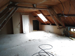Elle se compose au rez-de-chaussée d'une cuisine de 12.35 m2, d'un salon de 32.12 m2, un séjour de 24.63 m2 et une salle d'eau. L'étage de 38.92 m2 est à aménager sur la totalité.