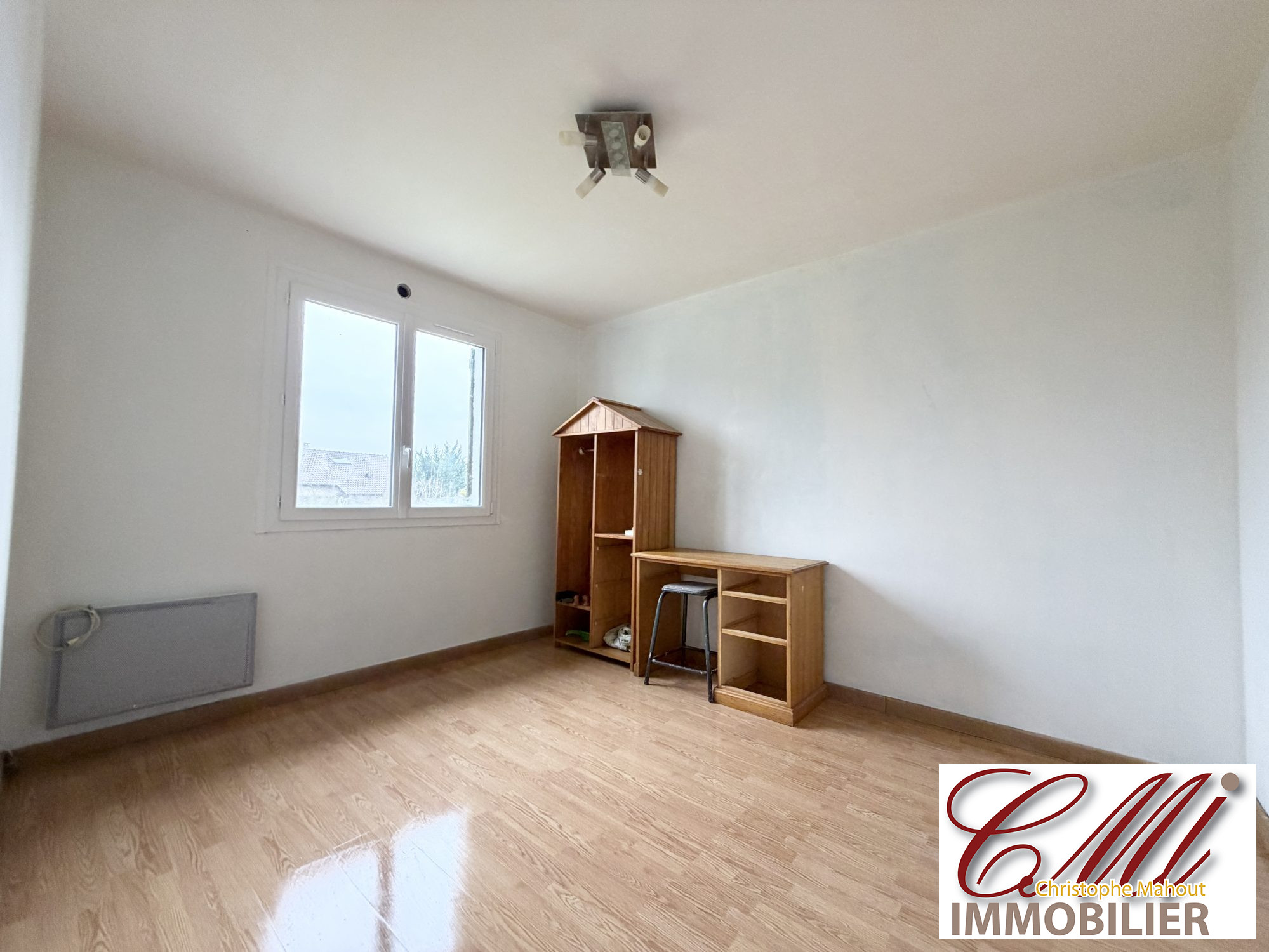 Au rez-de-chaussée : une entrée, une cuisine, un salon, une salle à manger, une salle de douche, un WC séparé. À l'étage : un grand palier, trois chambres, une seconde salle de bain.