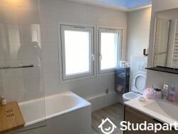 Famille de 4 personnes propose Chambre au 1er étage d'une maison de 150 mètres carré, avec toutes les commodités (salle de douche, bain, terrasse?), la cuisine est commune.