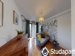 La chambre disponible dans la collocation est de 13m2 avec son dressing, bureau, lit double.