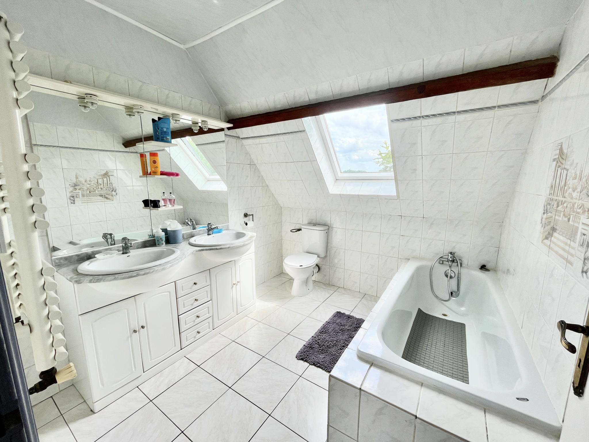 Une grande salle d'eau avec wc