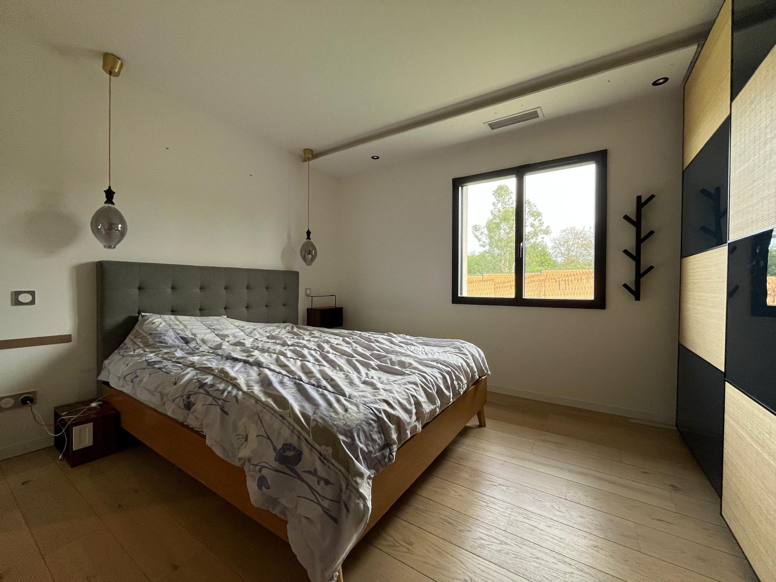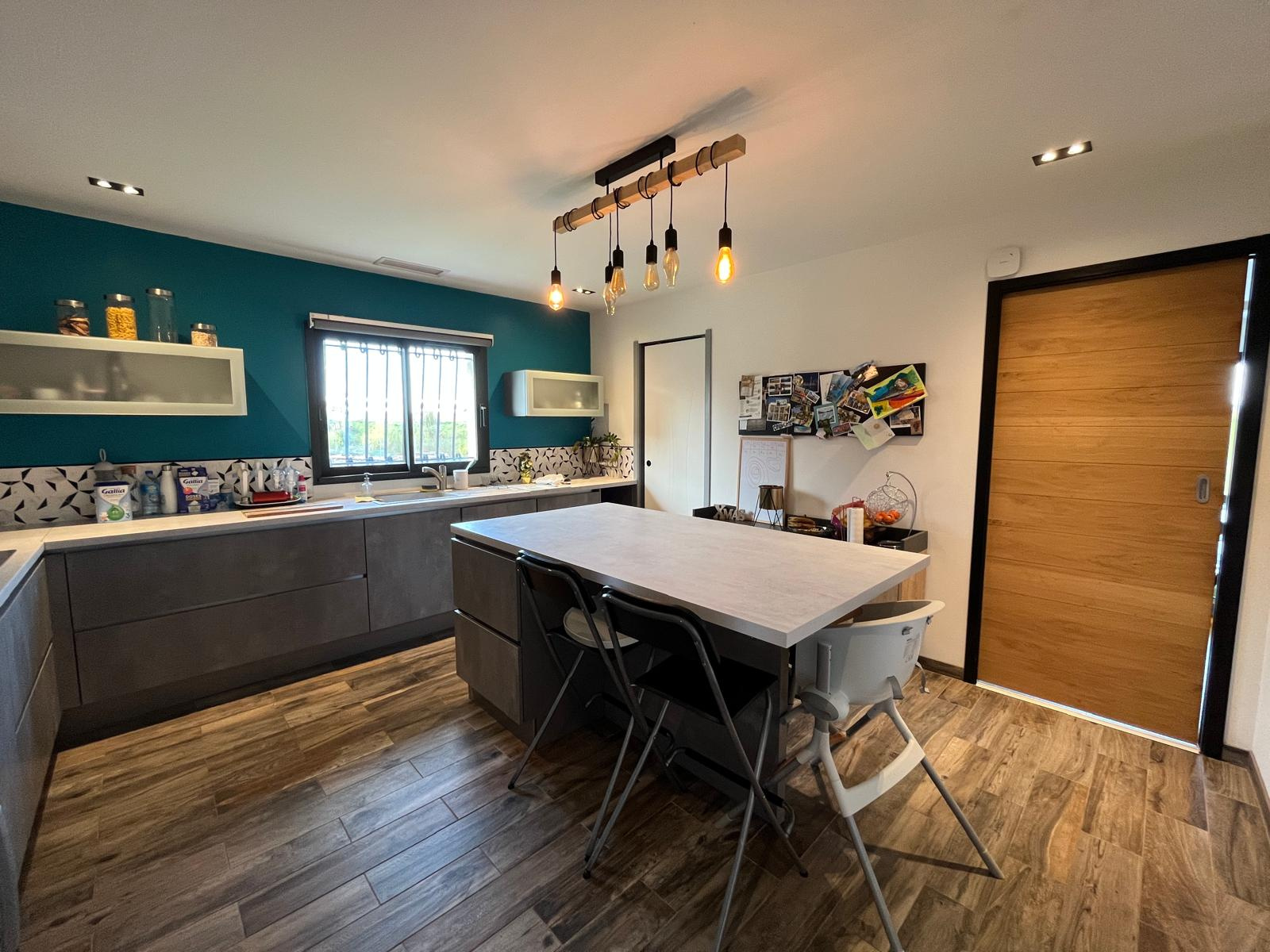 La maison est composée d'un grand séjour avec cuisine ouverte, 3 chambres, 2 salles d'eau et wc.