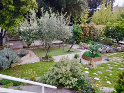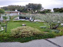 au Sud-Ouest, un espace ensoleillé avec superbes oliviers, pelouse et plantes méditerranéennes, au Sud face aux 38 m2 de terrasses, soleil, verdure et arbres au Sud-Est, un sous-bois charmant et ombragé, paysagé d'enrochements et de plantes de garrigue