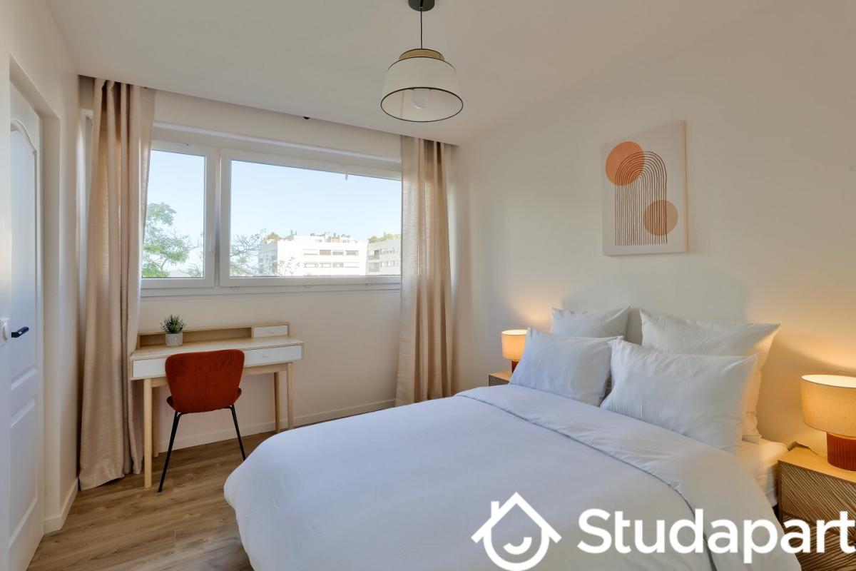 - un grand lit, un bureau avec son fauteuil