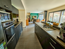Belle contemporaine de 160 m2 entièrement rénovée, comprenant une entrée avec placard, un belle pièce à vivre, une cuisine indépendante aménagée et équipée avec son grand garage/buanderie attenant et un wc indépendant. Côté 2 nuit chambres, une salle d'eau avec double vasque et douche à l'italienne, une superbe suite parentale composée, d'un espace bureau, d'une belle chambre lumineuse avec un dressing aménagé et une salle d'eau avec wc. A l'extérieur, une terrasse, une piscine hors sol, un cabanon de 20 m2, 3 puits avec 6 points d'eau, portail éléctrique, visiophone, le tout sur un beau terrain clos et arboré de 1215 m2. Prestations de qualité pour ce bien parfaitement entretenu. Idéalement située, proche écoles et commerces.