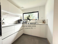 Vous découvrirez au rez-de-chaussée, un hall d'entrée avec dressing desservant une lumineuse pièce de vie d'environ 58m² comprenant un séjour donnant accès direct à la terrasse et au jardin ainsi qu'une cuisine moderne entièrement équipée, une suite parentale avec douche à l'italienne, meuble vasque, baignoire et dressing, un bureau idéal pour le télétravail et un WC indépendant.