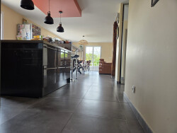 On découvre une entrée avec placards nous permettant d'avancer sur un très bel espace de vie de 66m² avec une cuisine ample et fonctionnelle ouverte sur le séjour - salon. Lumineuse grâce à de nombreuses ouvertures sur la terrasse de 30 m², on découvre également un poêle à granulés dans la partie salon.