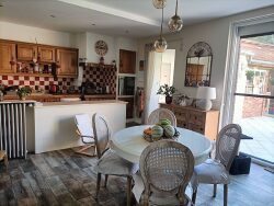 Beaucoup de charme pour cette maison de 151 m² habitables, située à 10 mn de CHATEAU-THIERRY, en parfait état, comprenant au rdc : entrée avec placard, salon avec cheminée, dégagement, cuisine meublée & équipée ouverte avec espace dinatoire avec placard et avec accès direct sur la terrasse, un dégagement, wc, cellier. A l'étage : palier desservant 3 chambres, salle d'eau avec baignoire. Au-dessus : 2 chambres. Garage avec grenier au-dessus. Une cave et petit atelier. Pompe à chaleur. L'ensemble sur 1633 m² de terrain.