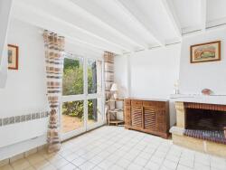 Elle se compose au rez-de-chaussée d'une pièce à vivre avec une cheminée, une petite cuisine aménagée et un WC. L'espace de vie donne sur une terrasse et un jardin exposé sud-ouest, parfait pour profiter des beaux jours.